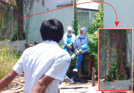 Belakangan ini sesosok penampakan yang berhasil tertangkap kamera Handphone seorang remaja SMA jadi perbincangan para pengguna facebook, dimana penampakan yang diduga merupakan sosok hantu ini tampak jelas di samping dua wanita yang tengah berfoto di rumah tua.